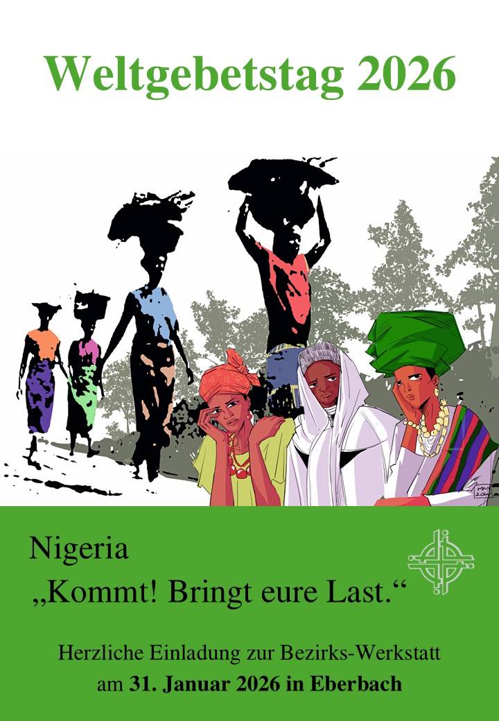 Wir laden Sie ein, in der Werkstatt am 31. Januar 2026 von 14-18 Uhr im Evangelischen Gemeindehaus am Leopoldsplatz in Eberbach Nigeria, das Leben und den Glauben der Frauen dort und die von ihnen erarbeitete Ordnung intensiv kennenzulernen, andere zu treffen und gute Ideen mitzunehmen.