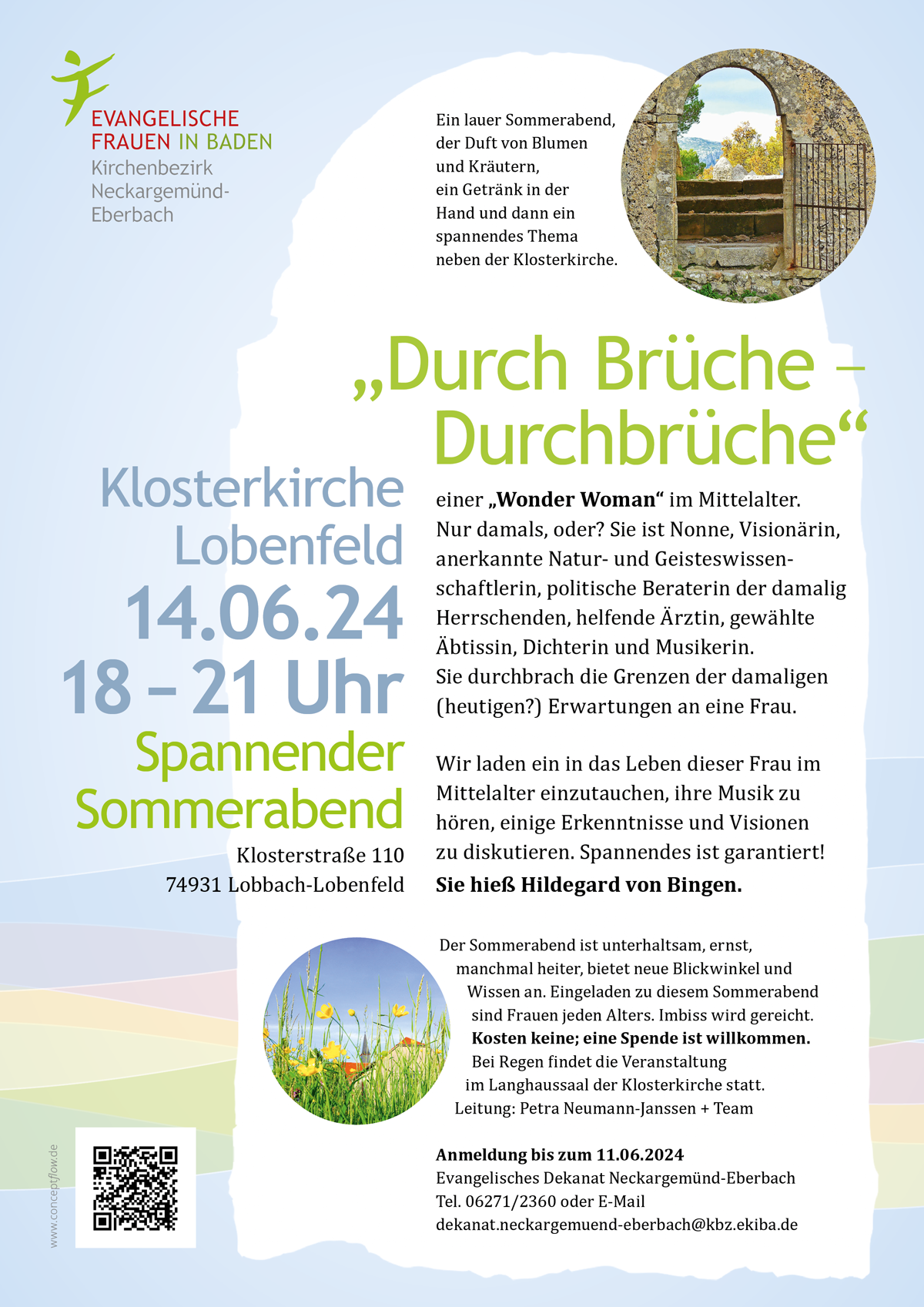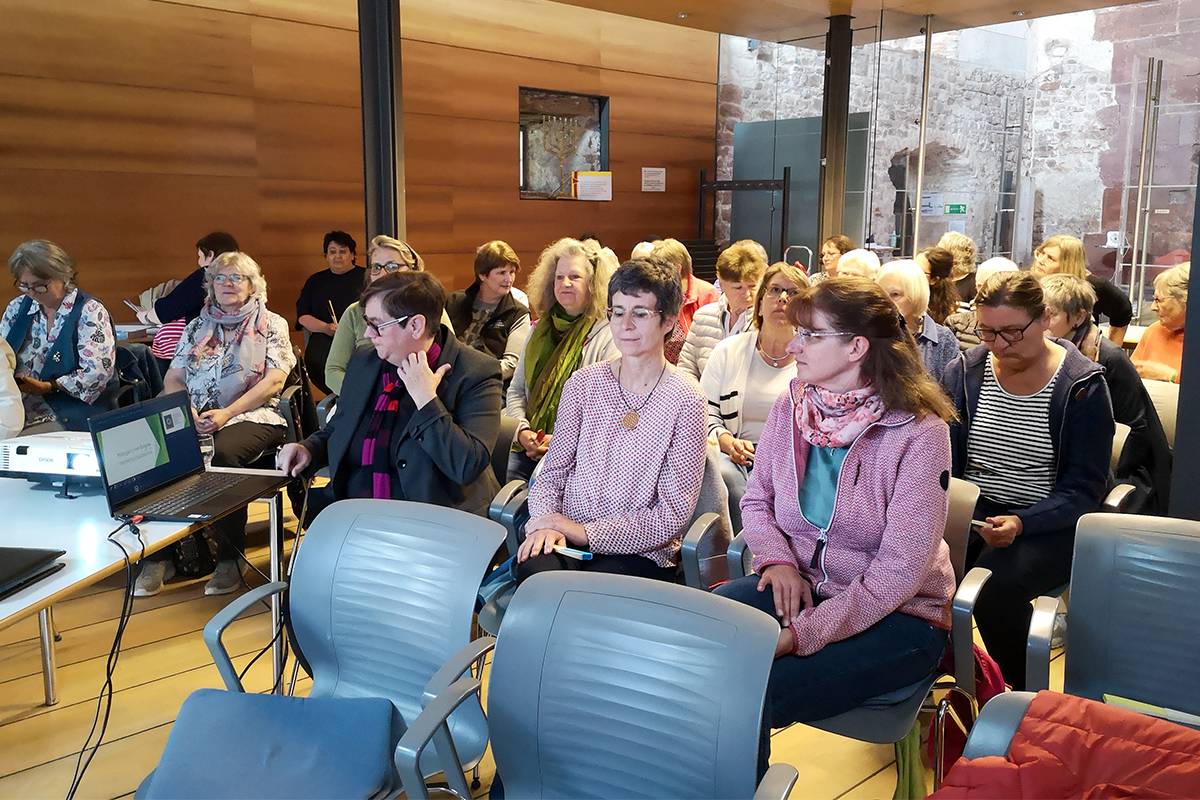 Vierzig Frauen fanden sich in Lobenfeld in der Klosterkirche ein, gespannt darauf, etwas über Hildegard von Bingen zu erfahren. Im Gemeindesaal waren die Stühle wie im Kino zur Leinwand gerichtet, so dass dem Vortrag von Petra Neumann-Janssen unter dem Motto "Das Leben im Mittelalter und dann Hildegard" gut gefolgt werden konnte. Zur Begrüßung bekam jede Frau einen Fächer als Sinnbild für das, was an diesem Abend "entfaltet" werden sollte, was auch mit der Vorstellung des Teams, Barbara Coors, Dorthe Neumann und Isolde Priebus verbunden wurde. Für das leibliche Wohl wurde bestens gesorgt; der Renner war ein selbst gebackenes Hildegard-Knäckebrot, das Rezept wurde eifrig abfotografiert.